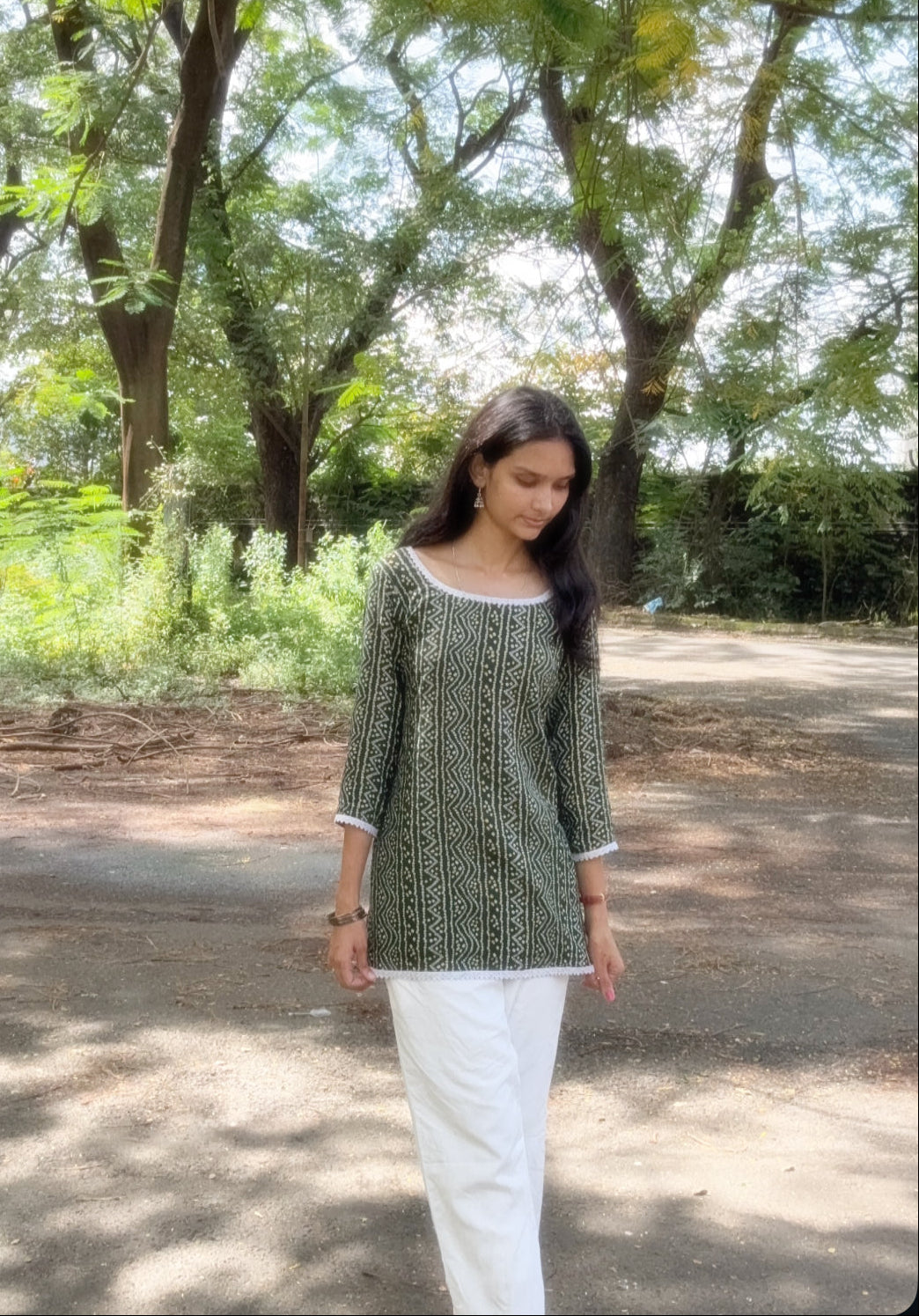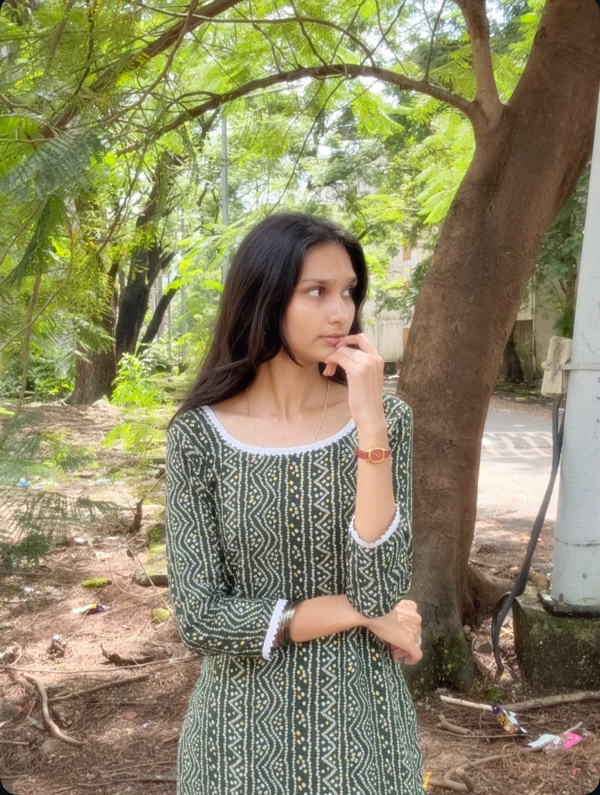 Three-fourth sleeves, elegant lace detailing and a shade of green that makes you glow — Heeriye is designed to keep you effortlessly beautiful every day.